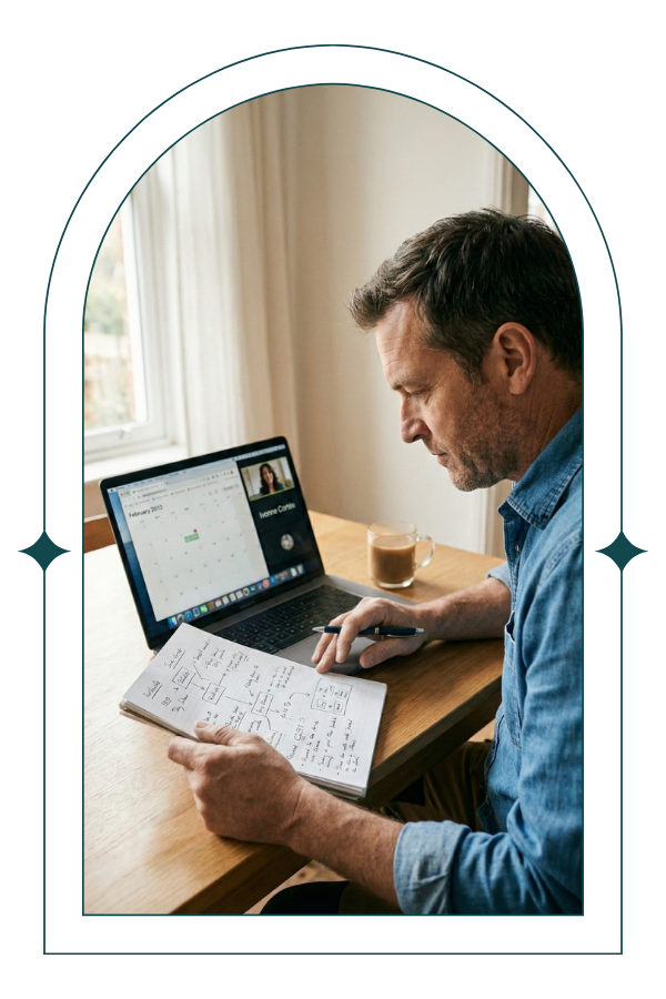 Sesión de Estrategia: 90 minutos de intervención directa conmigo para aterrizar tus ideas y eliminar el ruido mental.